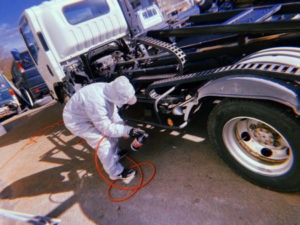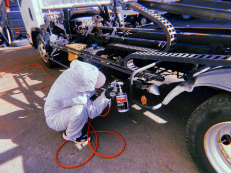 レッカー車の防錆処理しました🍂 スリーラスター(塩害対策用長期防錆剤)の黒色を使用😎 多少のサビがあっても施工でき、サビの進行を抑制する優れもの✨ キャブもあげ隅々まで… 薄くなりがちな角部分などもバッチリです👍✨ スタッフ募集中♪ お気軽にお問い合わせください(^▽^)/